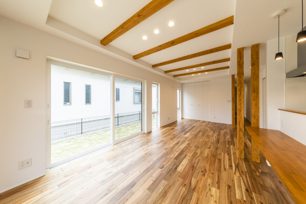 ▷天井の梁を表しにしたLDK